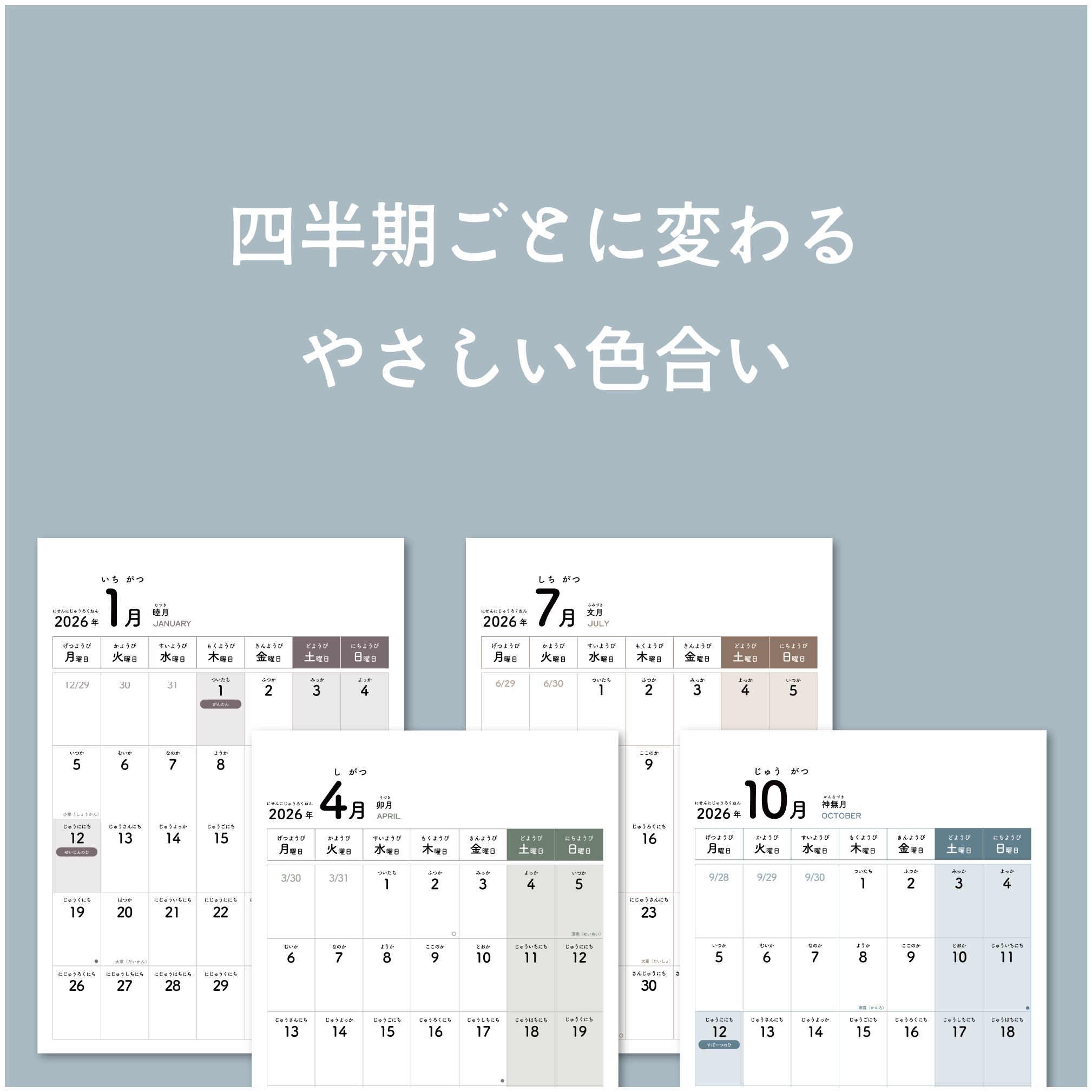四半期ごとに変わる4色のカラーは