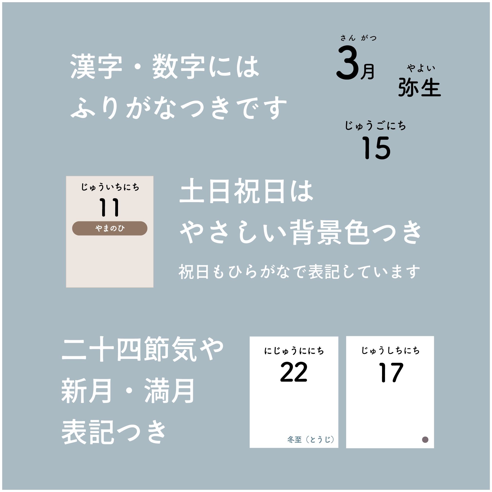 ○季節の移ろいを感じられる、二十四節気の表記つき。